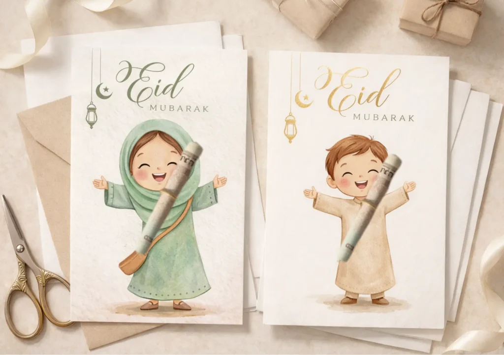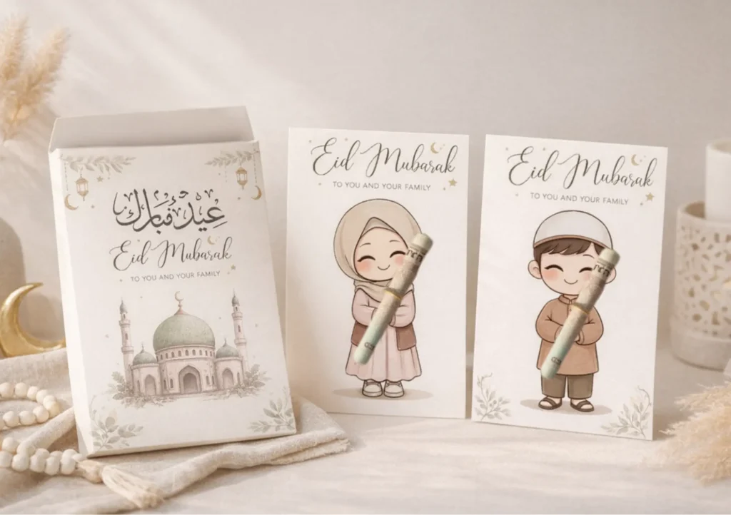 Cute Islamic Money Envelope & Gift Card – Instant Download Make your Eidiya extra special this Eid ✨ Instead of giving money in a plain envelope, surprise your loved ones with this beautifully designed Eid Mubarak Eidiya printable set featuring adorable Muslim kids and an elegant mosque illustration. Perfect for children, family members, and guests … Read more