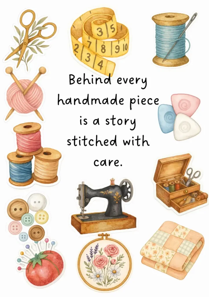 Sewing & Craft Digital Sticker Pack – Watercolor Cottagecore Collection