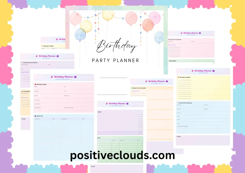 Make birthday planning simple, organized, and stress-free with this beautifully designed 8-Page Birthday Party Planner. With clean layouts, soft pastel colors, and plenty of writing space, this planner helps you stay on top of every detail—from guest lists to menu planning and decorations. Perfect for moms, party hosts, teachers, or anyone preparing an unforgettable celebration! … Read more