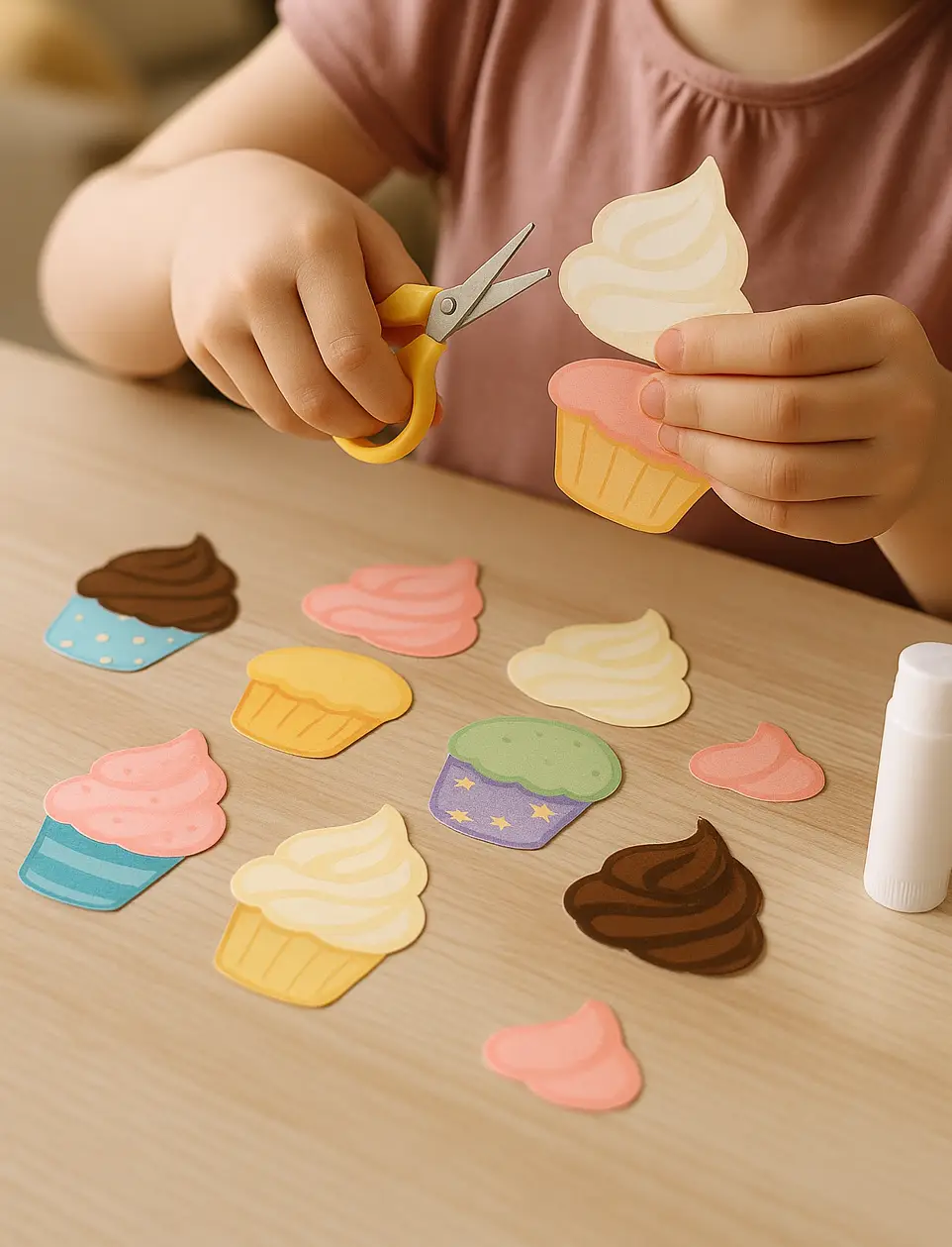 - Let your child build and glue their cupcake creations